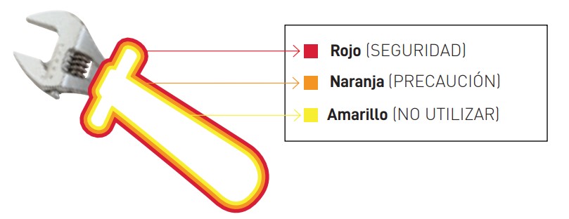 En el momento que aparezca el color Amarillo, se ha de dejar de utilizar de inmediato la llave ajustable como herramienta de seguridad eléctrica, y reemplazarla por una nueva.